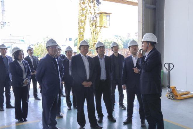 圖為北京科技大學領導參觀泰爾數字化車間畫麵