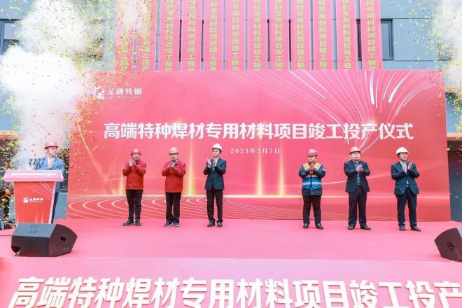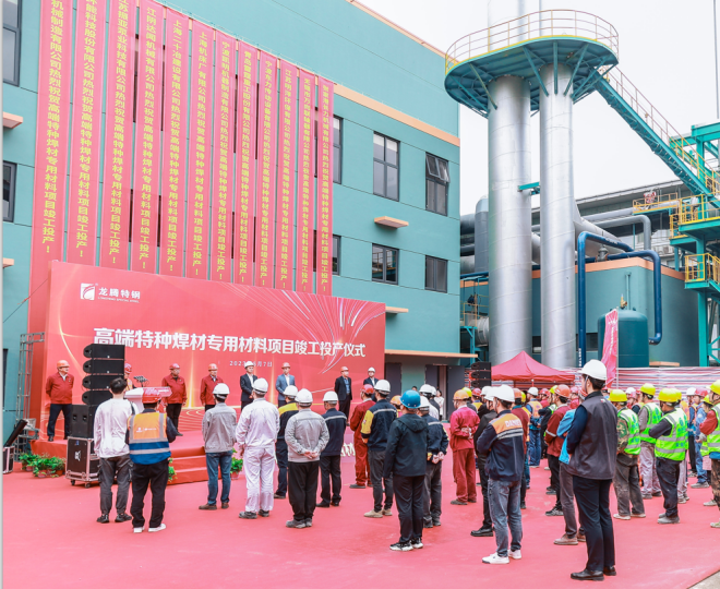 5月7日,龍騰特鋼高端特種焊材專用材料項目(雙高線分廠)竣工投產儀式隆重舉行,標誌著龍騰特鋼產業鏈又一次完善升級,產品深加工能力邁上新台階。