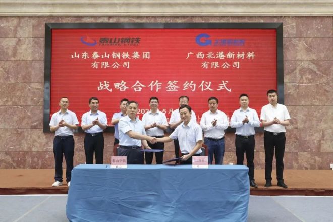 5月24日,北港新材料與山東泰山鋼鐵集團在北港永不鏽書院成功簽訂戰略合作協議。此次與泰山鋼鐵的戰略合作,將為北港新材料提質增效、加快轉型升級注入新的力量。