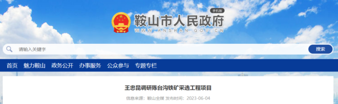 6月4日,鞍山市人民政府網站發布了《王忠昆調研陳台溝鐵礦采選工程項目》一文。