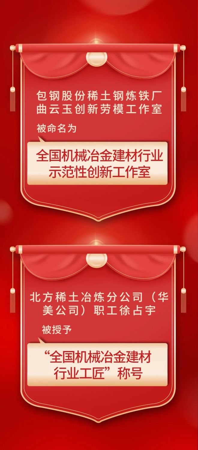 日前,2023年全國機械冶金建材行業職工技術創新成果、全國機械冶金建材行業示範性創新工作室、全國機械冶金建材行業工匠評選結果揭曉。包鋼集團獲得多項榮譽。