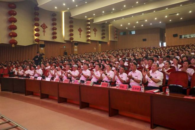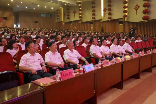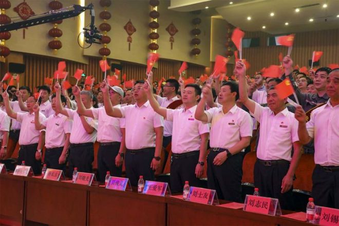 6月30日下午2時,俱樂部內氣氛熱烈,掌聲雷鳴,宏興鋼鐵慶祝中國共產黨成立102周年暨“七一”表彰大會如期舉行。