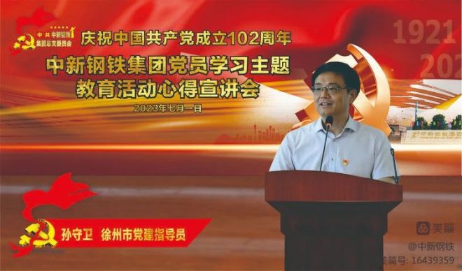 7月1日,中新鋼鐵集團黨總支召開熱烈慶祝中國共產黨成立102周年暨中新鋼鐵集團黨員學習主題教育活動心得宣講會。該集團全體黨員、發展對象、入黨積極分子等共計115名職工參加。江蘇省徐州市經開區黨工委黨群工作部科長甄珍、崔雪如,徐州市黨工建指導員孫守衛、王秀娟等參加會議。