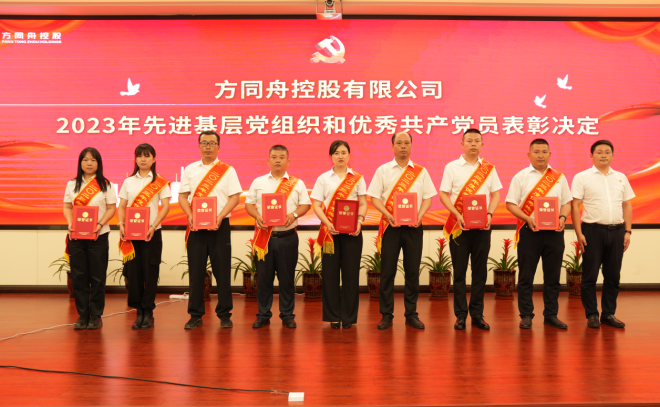 表彰大會在莊嚴的國歌聲中開幕。魏考增宣讀了《關於方同舟控股有限公司2023年度先進基層黨組織和優秀共產黨員表彰的決定》。此次共表彰先進基層黨組織6個;優秀共產黨員36名。受表彰的優秀共產黨員,他們是技術攻關研發人員、生產一線骨幹人員、部門基層管理人員,他們在各自崗位兢兢業業、盡職盡責,成為廣大黨員、職工學習的榜樣。