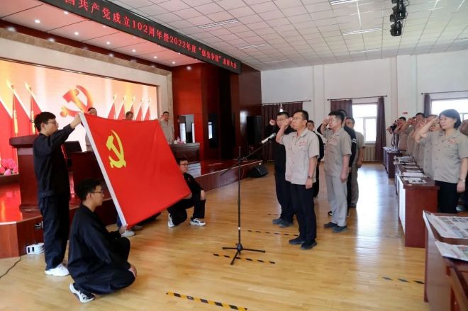 大會在莊嚴的《中華人民共和國國歌》中拉開序幕。麵對鮮紅的中國共產黨黨旗,黨委書記陳宏超帶領與會黨員重溫入黨誓詞,錚錚誓言響徹會場。