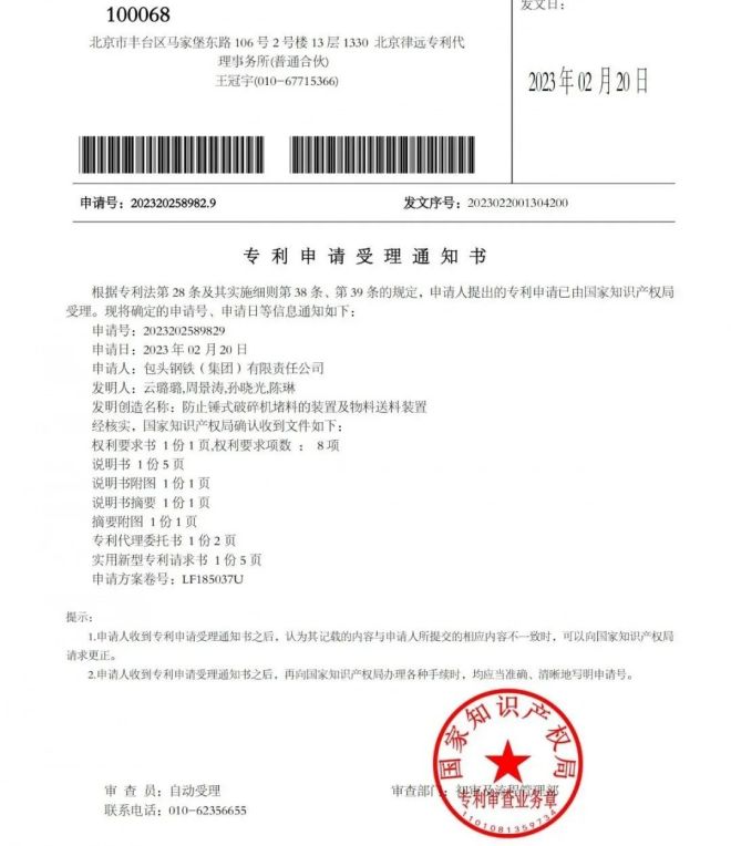 近日,包鋼股份化檢驗中心“防止錘式破碎機堵料的裝置及物料送料裝置”“一種汽車自動取樣車底高的檢測器”兩項創新成果榮獲國家知識產權局實用新型專利授權。