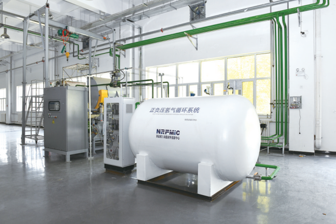 今年年中,包鋼集團再一次驚豔業界——全國首台套固態儲氫係統示範裝置亮相包頭,為工業用氫、儲氫貢獻了新的“包鋼智慧”。稀土院副院長、國(guo)家(jia)稀(xi)土(tu)功(gong)能(neng)材(cai)料(liao)創(chuang)新(xin)中(zhong)心(xin)總(zong)經(jing)理(li)劉(liu)威(wei)表(biao)示(shi),這(zhe)台(tai)由(you)稀(xi)土(tu)行(xing)業(ye)頂(ding)尖(jian)科(ke)研(yan)團(tuan)隊(dui)設(she)計(ji)並(bing)打(da)造(zao)的(de)儲(chu)氫(qing)裝(zhuang)置(zhi)具(ju)有(you)優(you)良(liang)熱(re)量(liang)管(guan)控(kong)能(neng)力(li)的(de)高(gao)密(mi)度(du)氫(qing)氣(qi)回(hui)收(shou)—再利用係統,將有效解決常溫常壓下儲氫合金高效吸、放(fang)氫(qing)動(dong)力(li)學(xue)及(ji)熱(re)力(li)學(xue)的(de)產(chan)業(ye)化(hua)技(ji)術(shu)壁(bi)壘(lei),激(ji)發(fa)稀(xi)土(tu)儲(chu)氫(qing)材(cai)料(liao)潛(qian)力(li),促(cu)進(jin)稀(xi)土(tu)資(zi)源(yuan)綜(zong)合(he)利(li)用(yong),優(you)化(hua)用(yong)氫(qing)產(chan)業(ye)結(jie)構(gou),平(ping)衡(heng)氫(qing)氣(qi)資(zi)源(yuan)分(fen)布(bu),實(shi)現(xian)產(chan)品(pin)在(zai)新(xin)能(neng)源(yuan)、大型風光電領域儲能裝置等方麵的開發應用。目前該項目已申請專利13個,其中授權專利9個。