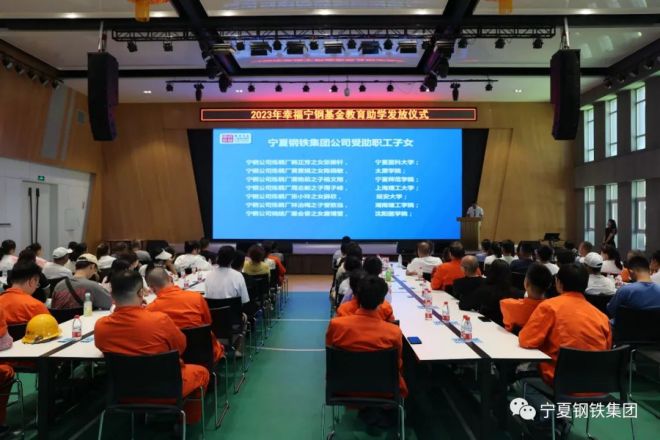 拳拳愛心點燃希望之光,片片真情托起明日朝陽。8月18日下午,寧夏鋼鐵集團(以下簡稱“寧鋼集團”)隆重舉行2023年“幸福寧鋼基金”助學金發放儀式,為29名品學兼優即將進入大學殿堂的學子發放助學金。寧鋼公司總經理韓昱、生產總經理王俊祥、生產副總經理周正貴、行政副總經理朱淑英、總經理助理劉維燕等領導及學生家長和受資助學生參加儀式。