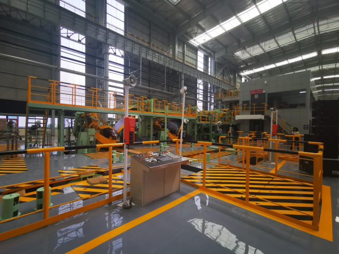 在酸洗係統中,采用中冶南方自主研發的矽鋼高效酸洗工藝,通過高效紊流酸洗槽、酸濃度模型、酸液脫矽新工藝等係列裝備技術,提升帶鋼表麵質量的同時,降低生產成本,助力節能減排、綠色環保。