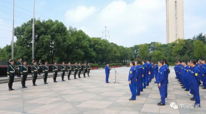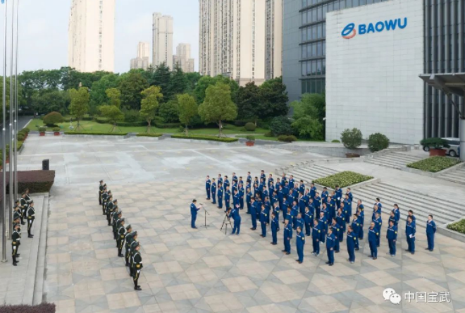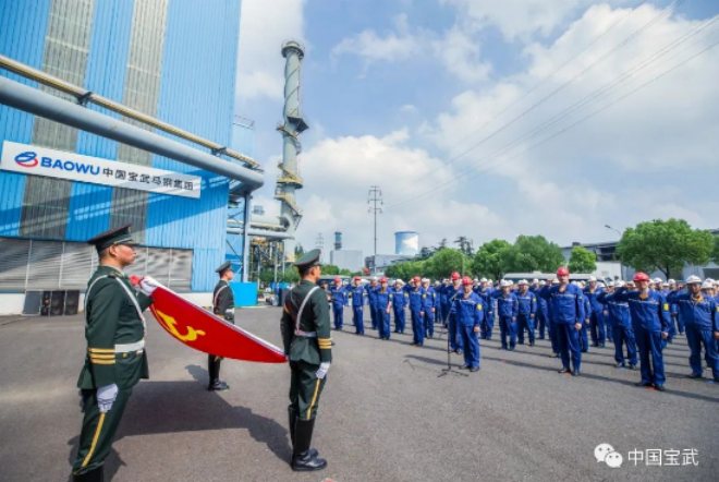 8時30分,升旗儀式舉行。在雄壯的國歌聲中,鮮豔的五星紅旗和寶武司旗、馬鋼司旗在燦爛的陽光下冉冉升起。