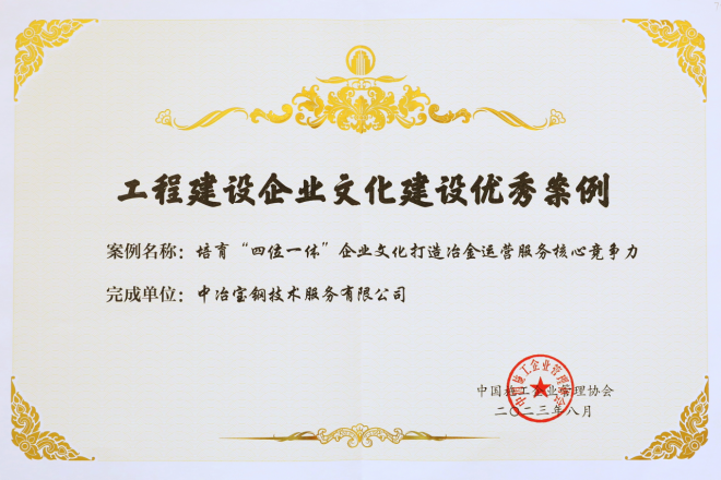 8月18日,從中國施工企業管理協會舉辦的2023年工程建設行業文化大會獲悉,中冶寶鋼打造與時俱進的“四位一體”企業文化引領冶金運營服務高質量發展的相關做法和成效獲評工程建設企業文化建設優秀案例。