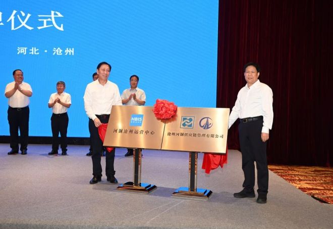 在熱烈的掌聲中,於勇、康彥民共同為河鋼滄州運營中心、滄州河鋼供應鏈管理有限公司揭牌。