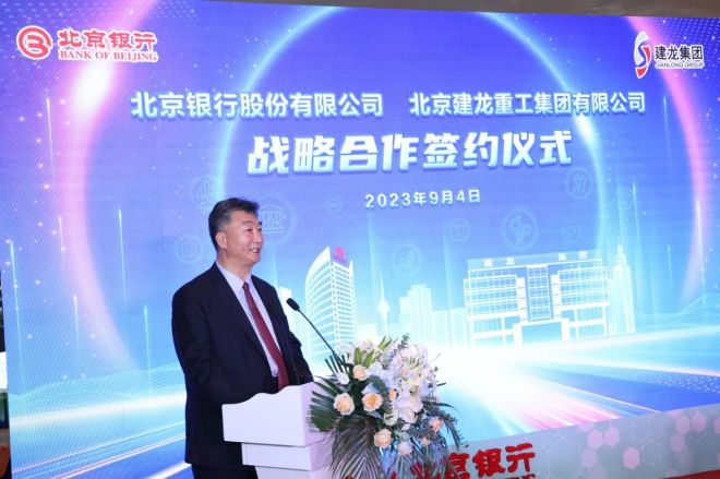 9月4日,在2023年中國國際服務貿易交易會期間,北京建龍重工集團有限公司(簡稱建龍集團)與北京銀行股份有限公司(簡稱北京銀行)在首鋼園簽署戰略合作協議。建龍集團副總裁鄭鵬與北京銀行副行長戴煒分別代表雙方簽署協議。建龍集團董事長、總裁張誌祥,北京銀行黨委書記、董事長霍學文見證簽約。