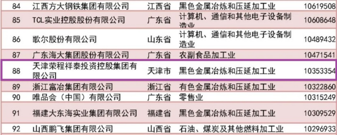 榮程集團位列2023中國民營企業500強第88位