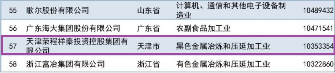 榮程集團位列2023中國製造業民營企業500強第57位