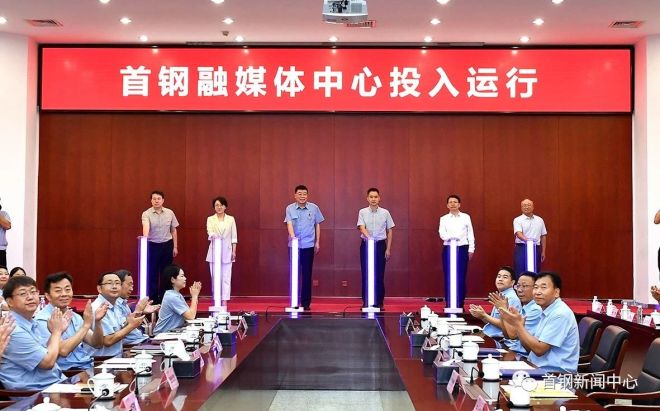 首鋼集團黨委書記、董事長趙民革為從事首鋼新聞工作30年、作(zuo)出(chu)貢(gong)獻(xian)的(de)新(xin)聞(wen)工(gong)作(zuo)者(zhe)代(dai)表(biao)頒(ban)發(fa)榮(rong)譽(yu)證(zheng)書(shu),並(bing)和(he)中(zhong)宣(xuan)部(bu)傳(chuan)媒(mei)監(jian)管(guan)局(ju)行(xing)政(zheng)協(xie)調(tiao)處(chu)處(chu)長(chang)丁(ding)智(zhi)勇(yong),中(zhong)國(guo)記(ji)協(xie)國(guo)內(nei)工(gong)作(zuo)部(bu)副(fu)主(zhu)任(ren)王(wang)佳(jia),北(bei)京(jing)市(shi)國(guo)資(zi)委(wei)一(yi)級(ji)巡(xun)視(shi)員(yuan)翟(zhai)賢(xian)軍(jun),北(bei)京(jing)市(shi)委(wei)宣(xuan)傳(chuan)部(bu)傳(chuan)媒(mei)監(jian)管(guan)處(chu)副(fu)處(chu)長(chang)、一(yi)級(ji)調(tiao)研(yan)員(yuan)張(zhang)俊(jun)傑(jie),中(zhong)國(guo)企(qi)業(ye)報(bao)協(xie)會(hui)會(hui)長(chang)俞(yu)太(tai)銀(yin)共(gong)同(tong)啟(qi)動(dong)首(shou)鋼(gang)融(rong)媒(mei)體(ti)中(zhong)心(xin)投(tou)運(yun)。首(shou)鋼(gang)集(ji)團(tuan)黨(dang)委(wei)副(fu)書(shu)記(ji)邱(qiu)銀(yin)富(fu)主(zhu)持(chi)會(hui)議(yi)。石(shi)景(jing)山(shan)區(qu)融(rong)媒(mei)體(ti)中(zhong)心(xin)副(fu)主(zhu)任(ren)譚(tan)一(yi)兵(bing),首(shou)鋼(gang)集(ji)團(tuan)總(zong)部(bu)部(bu)門(men)領(ling)導(dao),各(ge)單(dan)位(wei)分(fen)管(guan)宣(xuan)傳(chuan)工(gong)作(zuo)的(de)領(ling)導(dao)、宣傳部長,集團黨委宣傳部和新聞中心全體人員,首鋼日報社退休老同誌代表參加會議。