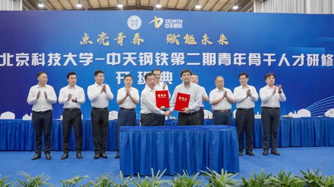 北科大作為新中國建立的第一所鋼鐵工業高等學府,為中天鋼鐵集團輸送了大批專業技術人才。2017年,北科大與中天鋼鐵共同舉辦了第一期骨幹人才研修班,其中大部分骨幹都參與籌建了中天鋼鐵綠色精品鋼項目,為中天鋼鐵“二次創業”提供了強大支撐。