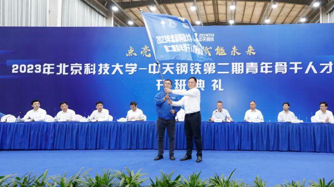 中天鋼鐵集團董事局主席、總裁、黨委書記董才平表示,創新是引領發展的第一動力,人才是保持核心競爭力的第一資源。2016年起,中天鋼鐵就與北科大在人才引進、人才培養、科研創新等方麵開展校企合作,企業擁有北科大優秀校友70多名,取得了全國冶金科學技術一等獎等重要技術成果。中天鋼鐵進入高質量發展階段,迫切需要打造複合化、年輕化、知識化的人才隊伍,既要有“頂天立地”的尖端科研人才,也要有“鋪天蓋地”的工匠技術人才,希望青年骨幹們邊充電學習邊謀劃工作新思路,開闊眼界、創新作為。