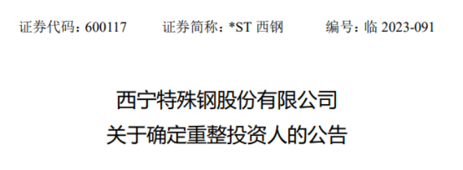 9月23日,西寧特鋼發布了《西寧特殊鋼股份有限公司關於確定重整投資人的公告》(以下簡稱《公告》)。