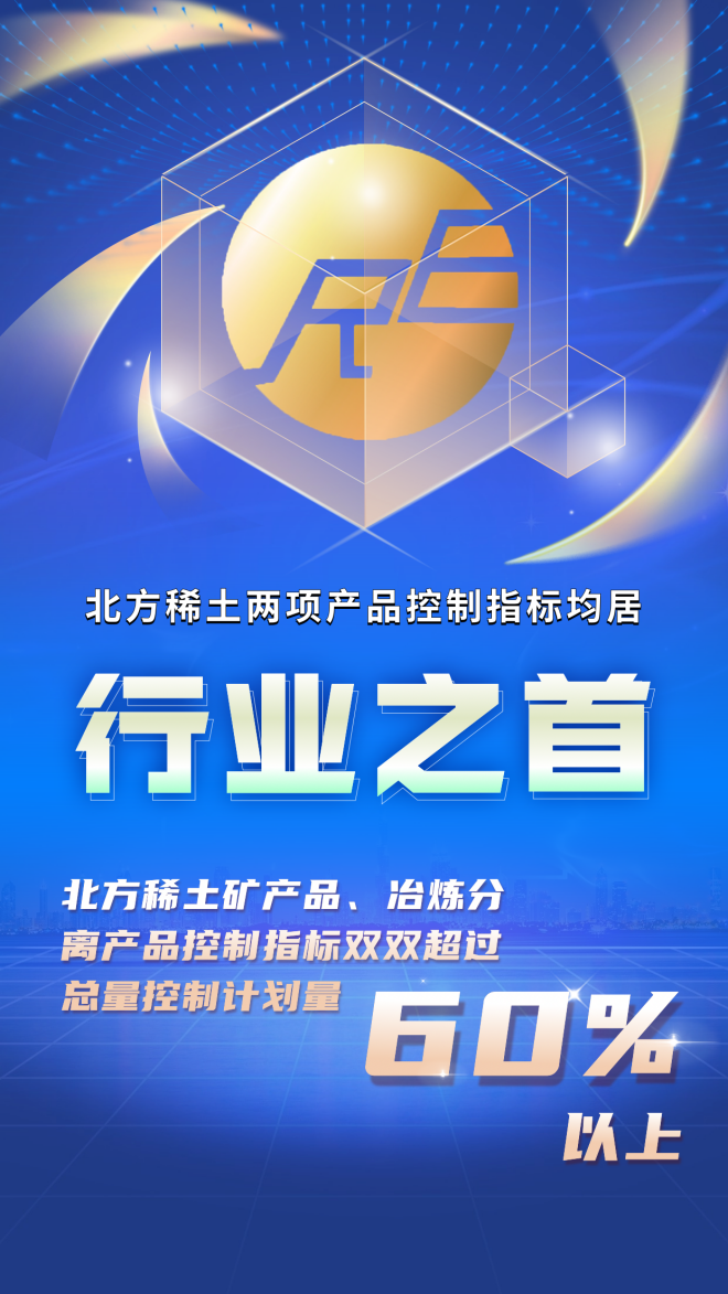 近日,國家工業和信息化部、自然資源部發布《關於下達2023年第二批稀土開采、冶煉分離總量控製指標的通知》,北方稀土礦產品、冶煉分離產品控製指標雙雙超過總量控製計劃量60%以上,位居行業之首。