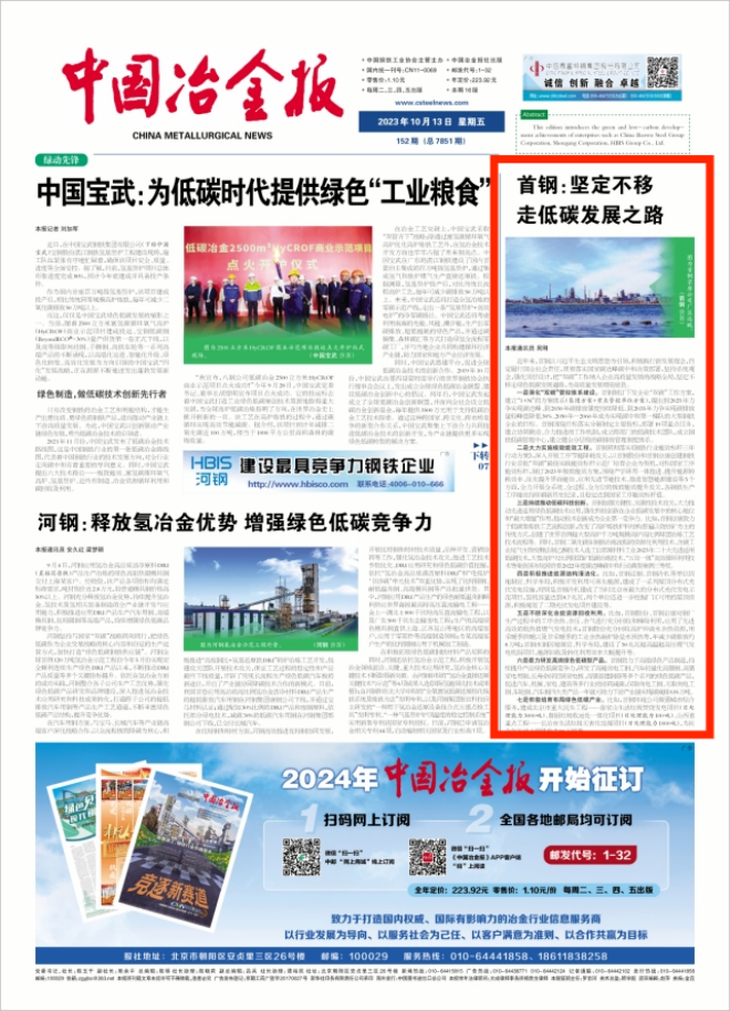 三是持續推動低碳科技創新。首鋼加強關鍵性、突破性技術攻關,大力推動先進適用綠色低碳技術應用,強化科技創新在企業低碳發展中的核心地位和“最大增量”作(zuo)用(yong),推(tui)動(dong)技(ji)術(shu)創(chuang)新(xin)成(cheng)為(wei)企(qi)業(ye)第(di)一(yi)競(jing)爭(zheng)力(li)。比(bi)如(ru),首(shou)鋼(gang)京(jing)唐(tang)致(zhi)力(li)於(yu)低(di)碳(tan)型(xing)煉(lian)鐵(tie)工(gong)藝(yi)流(liu)程(cheng)創(chuang)新(xin),改(gai)變(bian)了(le)高(gao)爐(lu)煉(lian)鐵(tie)爐(lu)料(liao)結(jie)構(gou)普(pu)遍(bian)以(yi)燒(shao)結(jie)礦(kuang)為(wei)主(zhu)的(de)傳(chuan)統(tong)方(fang)式(shi),創(chuang)建(jian)了(le)世(shi)界(jie)首(shou)例(li)超(chao)大(da)型(xing)高(gao)爐(lu)千(qian)萬(wan)噸(dun)規(gui)模(mo)高(gao)爐(lu)高(gao)比(bi)例(li)球(qiu)團(tuan)冶(ye)煉(lian)工(gong)藝(yi)技(ji)術(shu)流(liu)程(cheng)等(deng)。同(tong)時(shi),首(shou)鋼(gang)二(er)氧(yang)化(hua)碳(tan)在(zai)鋼(gang)鐵(tie)冶(ye)煉(lian)流(liu)程(cheng)的(de)資(zi)源(yuan)化(hua)利(li)用(yong)技(ji)術(shu)、含碳工業尾氣生物發酵法製乙醇技術入選工信部原材料工業2023年二十大先進適用低碳技術,大型高爐大比例球團礦低碳冶煉技術、“五效一體”高效循環利用技術等榮獲國務院國資委2022年度碳達峰碳中和行動典型案例三等獎。
