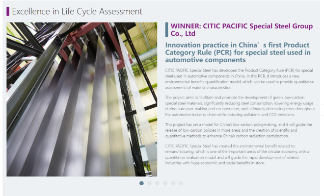 綠色低碳已成為全球製造業發展的必由之路。中信泰富特鋼始終秉持“綠色製造,製造綠色”發展理念,加強LCA(全生命周期)的全球合作,堅持走低碳可持續發展道路。“(汽車用)特殊鋼PCR”項(xiang)目(mu)獲(huo)獎(jiang)標(biao)誌(zhi)著(zhe)由(you)中(zhong)信(xin)泰(tai)富(fu)特(te)鋼(gang)提(ti)出(chu)的(de)特(te)殊(shu)鋼(gang)綠(lv)色(se)低(di)碳(tan)評(ping)價(jia)創(chuang)新(xin)方(fang)法(fa)與(yu)理(li)論(lun)獲(huo)得(de)國(guo)際(ji)行(xing)業(ye)專(zhuan)家(jia)廣(guang)泛(fan)認(ren)同(tong),標(biao)誌(zhi)著(zhe)中(zhong)國(guo)鋼(gang)鐵(tie)低(di)碳(tan)評(ping)價(jia)標(biao)準(zhun)體(ti)係(xi)建(jian)設(she)由(you)模(mo)仿(fang)、跟隨走向創新引領,將為中國參與國際綠鋼貿易規則製定,引領世界低碳評價創新提供強有力的支撐!