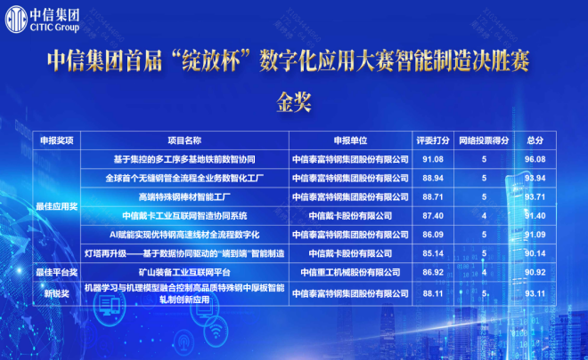 中信集團首屆“綻放杯”數字化應用大賽智能製造決勝賽在中信泰富特鋼舉行