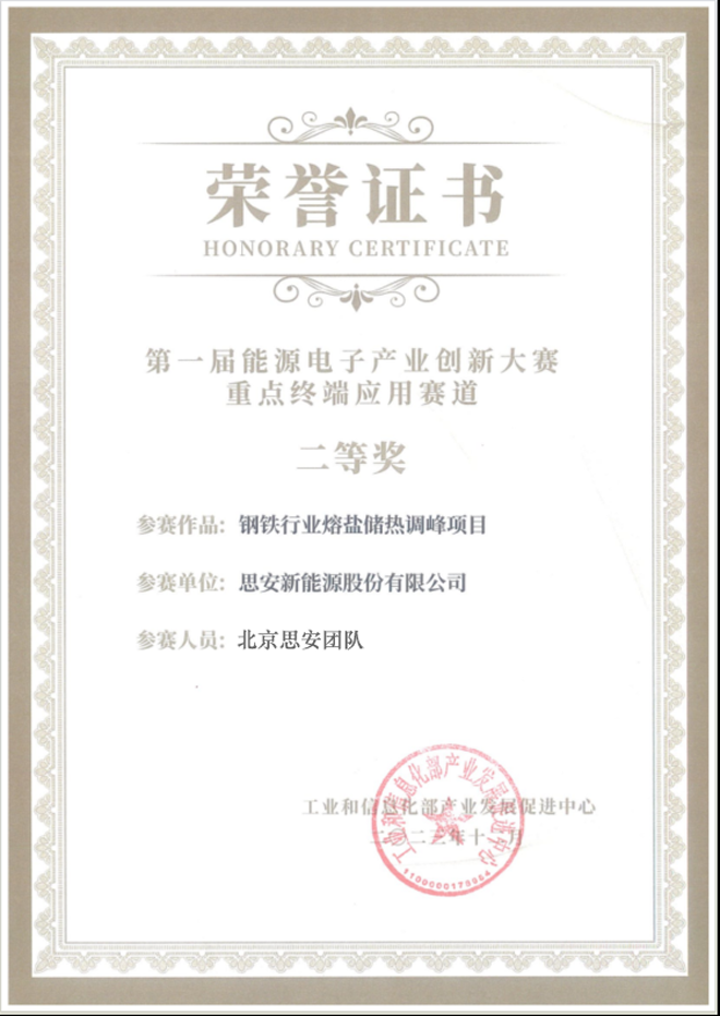 思安新能源榮獲工信部第一屆能源電子產業創新大賽二等獎