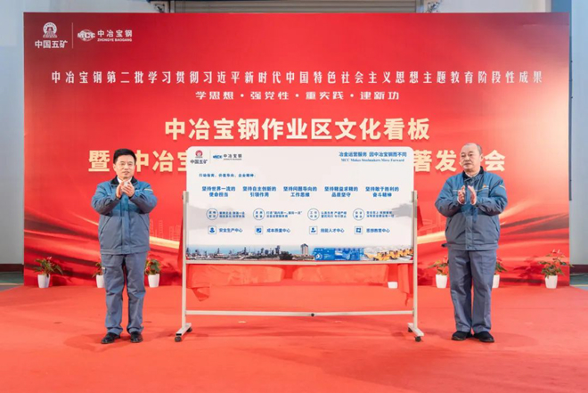 中(zhong)冶(ye)寶(bao)鋼(gang)黨(dang)委(wei)以(yi)深(shen)入(ru)開(kai)展(zhan)學(xue)習(xi)貫(guan)徹(che)習(xi)近(jin)平(ping)新(xin)時(shi)代(dai)中(zhong)國(guo)特(te)色(se)社(she)會(hui)主(zhu)義(yi)思(si)想(xiang)主(zhu)題(ti)教(jiao)育(yu)為(wei)契(qi)機(ji),堅(jian)持(chi)以(yi)人(ren)民(min)為(wei)中(zhong)心(xin)的(de)發(fa)展(zhan)思(si)想(xiang),以(yi)提(ti)高(gao)基(ji)層(ceng)管(guan)理(li)能(neng)力(li)、增強作業區核心功能為目標,探索實施作業區文化建設,形成了具有中冶寶鋼特色的作業區文化看板和展現中冶寶鋼人忠誠敬業擔當的《中冶寶鋼產業工人之歌》專著,取得了深入開展主題教育的階段性成果。發布會上,公司黨委號召各級黨組織和全體員工,認真貫徹中國五礦“五大核心要義”,充分發揮作業區安全生產中心、成本質量中心、技能人才中心、思想教育中心的重要作用,加速領跑冶金運營服務高質量發展,努力把中冶寶鋼打造成為鋼鐵企業最廣泛最緊密最深厚的戰略力量。