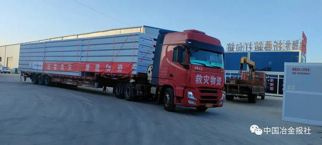 兩公司接到任務後,立即召開緊急動員會,集結馳援隊伍,協調裝配式活動板房生產商,確保物資盡快發出和人員及時到場。12月21日上午10時,甘肅分公司青海互助片區項目部率先到達現場,開展選址及場地前期平整工作。當天下午3時,經過3小時的緊急裝車,5輛帶著100套裝配式活動板房的車輛,在甘肅分公司駐場人員的護送下,從蘭州陸續啟程奔赴民和縣。