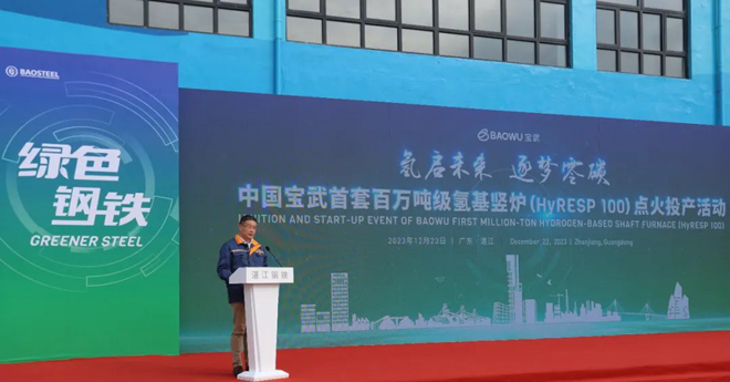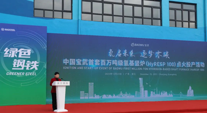 “我宣布,中國寶武首套百萬噸級氫基豎爐點火投產!”12月23日,中國寶武黨委書記、董dong事shi長chang胡hu望wang明ming下xia達da點dian火huo令ling並bing宣xuan布bu項xiang目mu點dian火huo投tou產chan,標biao誌zhi著zhe國guo內nei首shou套tao百bai萬wan噸dun級ji氫qing基ji豎shu爐lu正zheng式shi投tou入ru工gong業ye化hua運yun營ying,更geng標biao誌zhi著zhe以yi寶bao武wu為wei代dai表biao的de中zhong國guo鋼gang鐵tie工gong業ye即ji將jiang開kai啟qi探tan索suo零ling碳tan綠lv色se轉zhuan型xing發fa展zhan的de嶄zhan新xin篇pian章zhang。