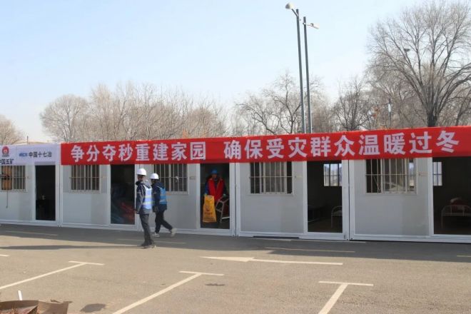 2024年1月3日,中國十七冶接到中國五礦轉發的青海省政府相關要求,再支援海東市循化撒拉族自治縣200套板房及相應折疊床、煤爐、電褥等基本設施,並於1月5日前安排運抵災區。當日下午,公司迅速開展支援工作統籌安排,積極應對周邊省份板房嚴重缺貨困難,連夜調配物資,經過長達300多公裏的奔襲,1月4-5日將1200套床上用品、電熱毯,1200張折疊床、200套煤爐運抵循化撒拉族自治縣街子鎮抗震救災物資集中安放點。1月6日晚9點55分,200套活動板房及相應折疊床、煤爐、電熱毯、床上用品等基本設施全部運抵現場,並交付當地使用,完成青海省政府要求的援建任務。