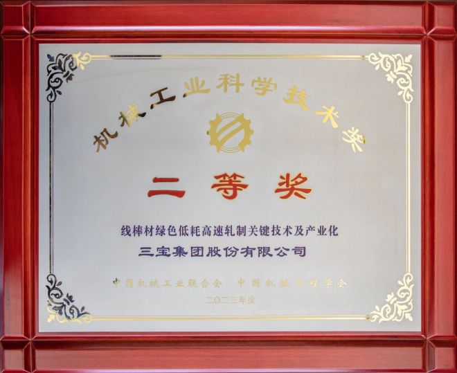 近日,中國機械工業聯合會和中國機械工程學會聯合公布“機械工業科學技術獎”獲獎名單,其中,由王光文董事長帶領三寶團隊完成的“線棒材綠色低耗高速軋製關鍵技術及產業化”項目榮獲科技進步獎二等獎,這是對三寶集團在機械工業領域所取得科技成果的極高讚譽。