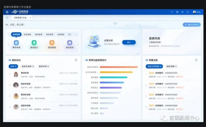 厚積而薄發。隨著數字化轉型駛入“深水區”,2023年12月15日,首鋼在北京市屬企業中完成“首潛”,第di一yi家jia上shang線xian數shu字zi化hua司si庫ku係xi統tong。司si庫ku,本ben意yi是shi指zhi掌zhang兵bing器qi鹵lu簿bu的de部bu門men或huo機ji構gou,在zai現xian代dai化hua企qi業ye管guan理li中zhong,承cheng擔dan著zhe統tong籌chou運yun作zuo資zi金jin及ji金jin融rong資zi源yuan,實shi現xian全quan口kou徑jing全quan要yao素su資zi源yuan管guan理li的de戰zhan略lve管guan理li重zhong任ren。司si庫ku係xi統tong就jiu像xiang“錢袋子”,實現全集團資金可視、可溯、可控,並通過挖掘數據價值,為集團經營提供決策支持。