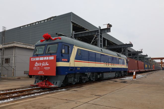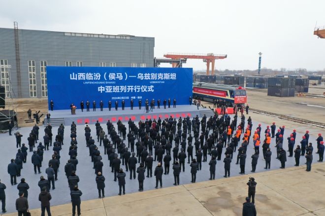 2月23日,伴隨著汽笛聲響起,一列滿載鋼材的班列從山西侯馬方略站台緩緩駛出,開往中亞國家烏茲別克斯坦。這是晉南鋼鐵綠色型鋼首次“走出”國門,進入國際市場。