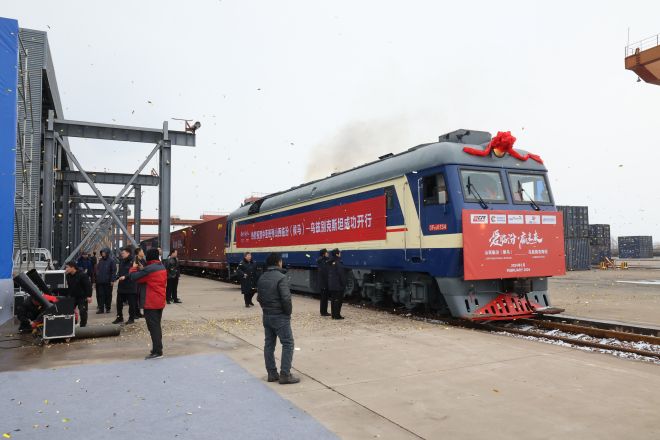 緩緩出站的晉南鋼鐵中亞班列