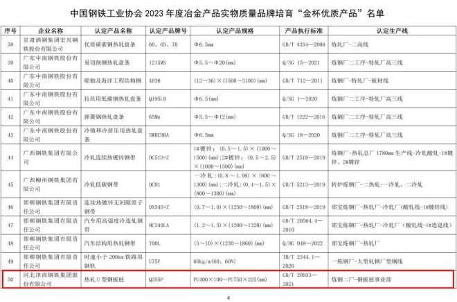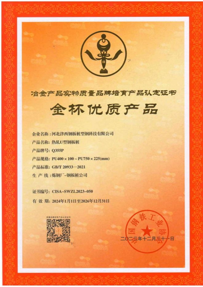 “在冶金產品實物質量品牌培育活動中,津西熱軋U型鋼板樁被冠名為‘金杯優質產品’,zuoweiyejinxingyefeichangyouyingxianglidezhiliangjiang,zheshiduijinxixinggangchanpinderenke,duijinyibutishengjinxixinggangchanpinshichangjingzhenglihedazaojinxipinpaijuyouzhongyaozuoyong”,相關申報負責人說。