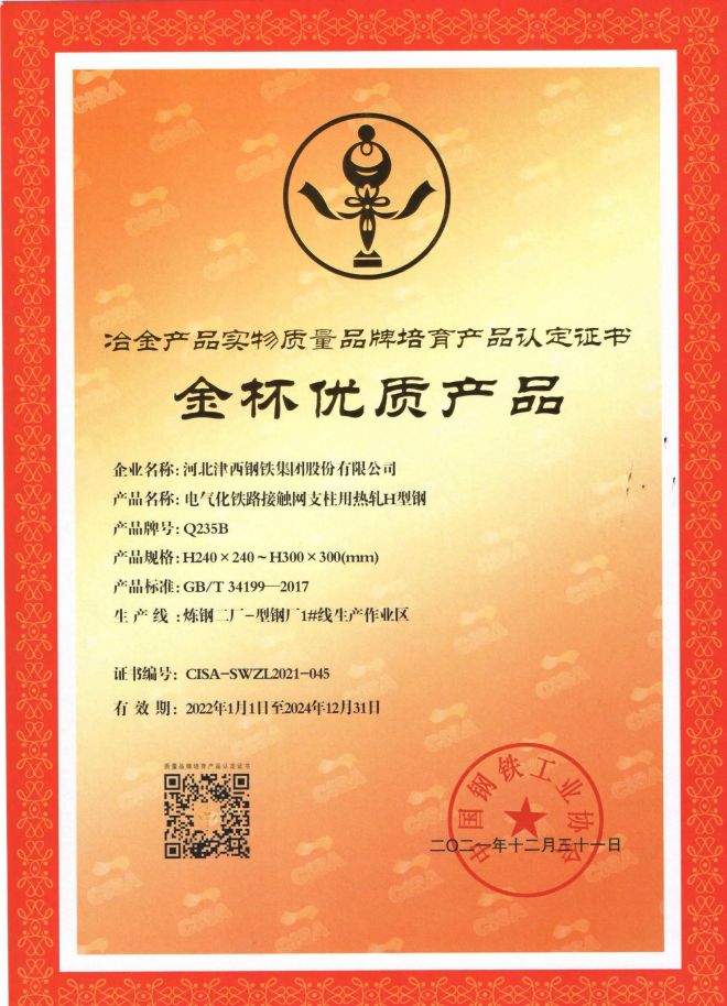 今年3月上旬,津西股份收到來自中鋼協的證書,熱軋U型鋼板樁被冠名為“金杯優質產品”。這是繼電氣化鐵路接觸網支柱用熱軋H型鋼、低合金高強度結構用熱軋H型鋼之後,津西型鋼產品第三次獲此殊榮。