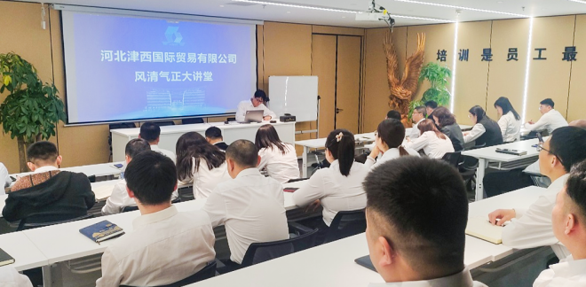 奏zou廉lian潔jie從cong業ye音yin,揚yang幹gan事shi創chuang業ye風feng。為wei紮zha實shi推tui進jin風feng清qing氣qi正zheng主zhu題ti活huo動dong,近jin日ri,津jin西xi國guo貿mao舉ju辦ban風feng清qing氣qi正zheng大da講jiang堂tang,引yin導dao公gong司si中zhong基ji層ceng幹gan部bu及ji重zhong點dian崗gang位wei人ren員yuan樹shu立li正zheng確que的de價jia值zhi觀guan和he事shi業ye觀guan,進jin一yi步bu夯hang實shi廉lian潔jie從cong業ye思si想xiang基ji礎chu和he文wen化hua根gen基ji,營ying造zao風feng清qing氣qi正zheng良liang好hao氛fen圍wei。