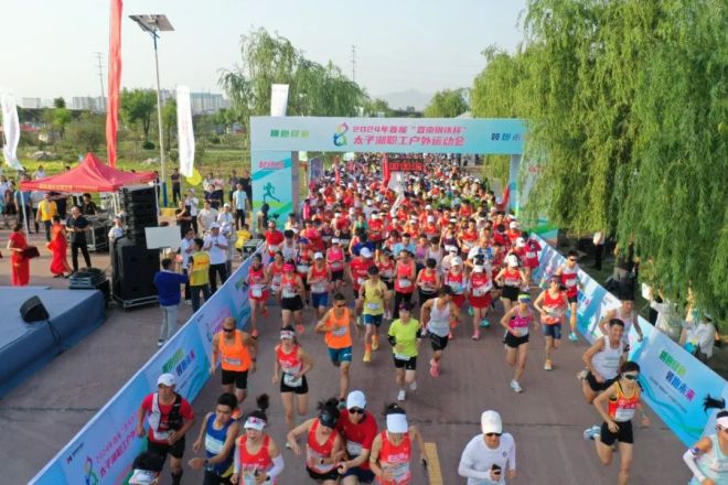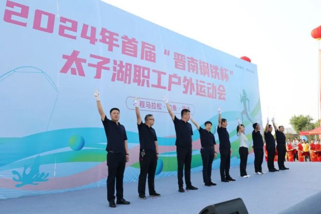 6月29日,2024年首屆“晉南鋼鐵杯”太子湖職工戶外運動會在集團太子湖畔成功舉辦。本次運動會主題為“擁抱綠色 領跑未來”,共設半程馬拉鬆、遊泳、釣魚三項比賽。曲沃經濟技術開發區黨工委書記、管委會主任孟海河,曲沃縣政府副縣長秦臣花,曲沃縣政協副主席、應急管理局局長李建紅;集團總裁張天福,生產副總裁武建偉,非鋼產業副總裁宋澮勇等出席開幕式,並為半程馬拉鬆鳴槍發令。來自集團員工、客戶及周邊區域的戶外運動愛好者近千人參加了比賽。