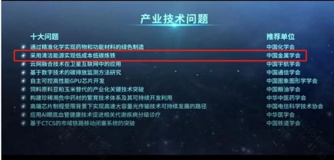 7月2日,在第二十六屆中國科協年會主論壇上,中國科協發布了2024年度重大科學問題、工程技術難題和產業技術問題目錄。興澄特鋼煉鐵事業部提報的“采用清潔能源實現低成本低碳煉鐵”項目被遴選為2024十大產業技術問題,成為鋼鐵行業唯一。