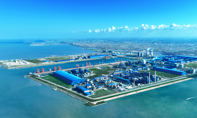 ▲矗立在黃海之濱的中天綠色精品鋼項目