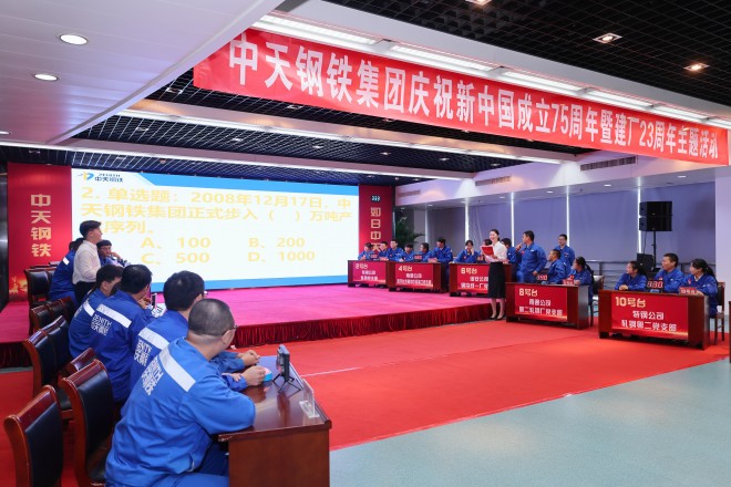 9月26日,中天鋼鐵集團慶祝新中國成立75周年暨建廠23周年主題活動盛大舉行。中天鋼鐵集團董事局主席、總裁、黨委書記董才平勉勵全員要樹立“文化興企”的理念,傳承和弘揚優秀中天文化,在全集團內掀起企業文化建設新浪潮,共同書寫中天鋼鐵新的輝煌篇章。