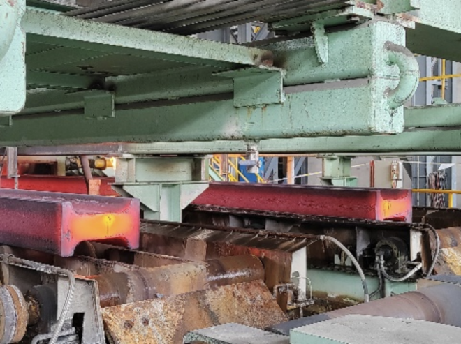 亮點二:生產重型異型坯腹板最大厚度180mm,預留斷麵1300×520×140mm,為世界最大規格重型異型坯;腹板厚度180mm的重型異型坯拉速0.7m/min,280×380mm斷麵矩形坯拉速1.10m/min,為國際上最快拉速。