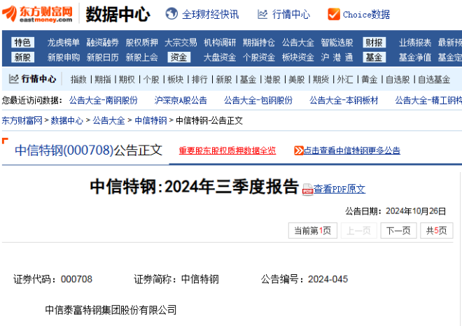 10月26日,中信特鋼發布《2024年三季度報告》(以下簡稱“報告”)。