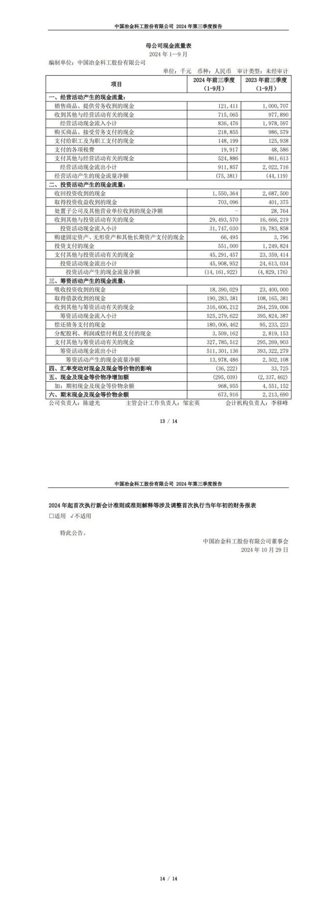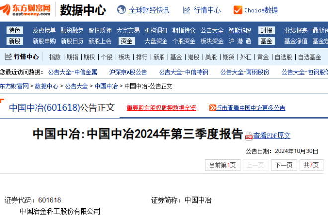 10月30日,中國中冶發布2024年第三季度報告(以下簡稱“報告”)。
