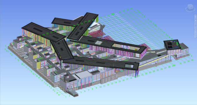 中zhong國guo二er十shi二er冶ye中zhong國guo古gu動dong物wu館guan項xiang目mu地di上shang部bu分fen由you七qi道dao城cheng牆qiang組zu成cheng,結jie構gou形xing式shi層ceng城cheng疊die構gou,城cheng牆qiang上shang的de六liu個ge巨ju大da不bu規gui則ze展zhan廳ting表biao現xian了le遠yuan古gu時shi代dai板ban塊kuai的de劇ju烈lie運yun動dong,為wei施shi工gong帶dai來lai了le巨ju大da挑tiao戰zhan。技ji術shu攻gong關guan小xiao組zu將jiangDW軟件應用在項目鋼結構建模詳圖深化出圖設計方麵,應用自研複雜節點庫,與傳統平麵設計相比,設計人力投入節約14人,工期節約30天,設計費用節約16.8萬元,大大縮短詳圖深化周期,降低深化設計成本。引入BIM+VR技術,通過施工模擬對平麵布置實施動態調整,實現資源使用效率的最大化。應用PKPM-CES碳排放計算軟件,大幅提升施工過程中碳排放計算的準確性和工作效率,通過對該軟件的應用,使保定博物館項目碳排放強度在2016年執行的節能設計標準基礎上降低了32.58%,按照項目建築麵積測算,相當於每平米多種植了一棵樹,實現綠色施工,為“碳中和”目標做出了積極貢獻。同時在鋼結構全施工流程中充分運用BIM技術、雲技術,打通了數據傳遞鏈條,實現項目施工組織、計劃編製、進度調節的精細化、高效化管理。該項目利用交付運維模型打造數字孿生博物館係統,全麵賦能場館管理,讓博物館既具有“科技感”,又具有“神秘感”,有效助推“數字鋼構”目標實現。