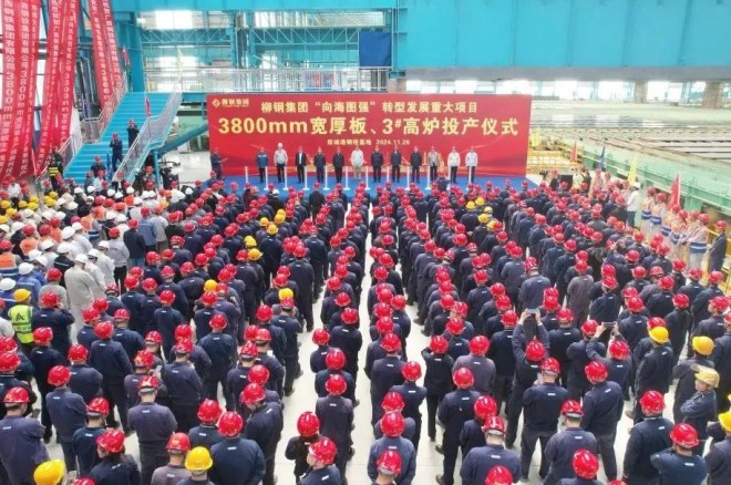 11月26日,柳鋼集團舉行“向海圖強”轉型發展重大項目——防城港鋼鐵基地3800mm寬厚板、3號高爐投產儀式。標誌著柳鋼集團“高端化、智能化、綠色化”轉型發展取得重大突破,填補了廣西寬厚板產品生產空白,防城港千萬噸級鋼鐵基地(一期)全麵建成,為全區工業振興注入強大鋼鐵動能。