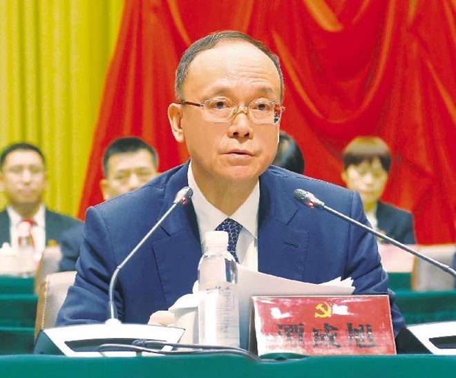 譚成旭在中國共產黨鞍鋼集團有限公司第三次黨員代表大會閉幕會上發表講話。