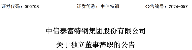 12月5日,中信泰富特鋼集團股份有限公司(以下簡稱“公司”)發布《關於獨立董事辭職的公告》(以下簡稱《公告一》)。
